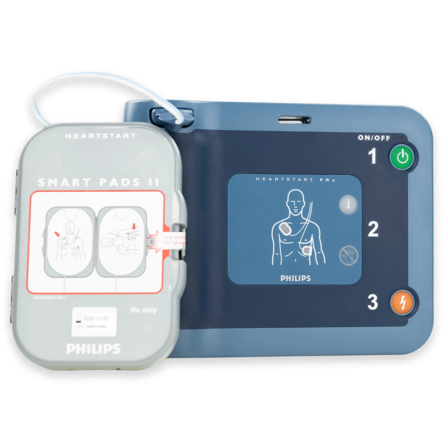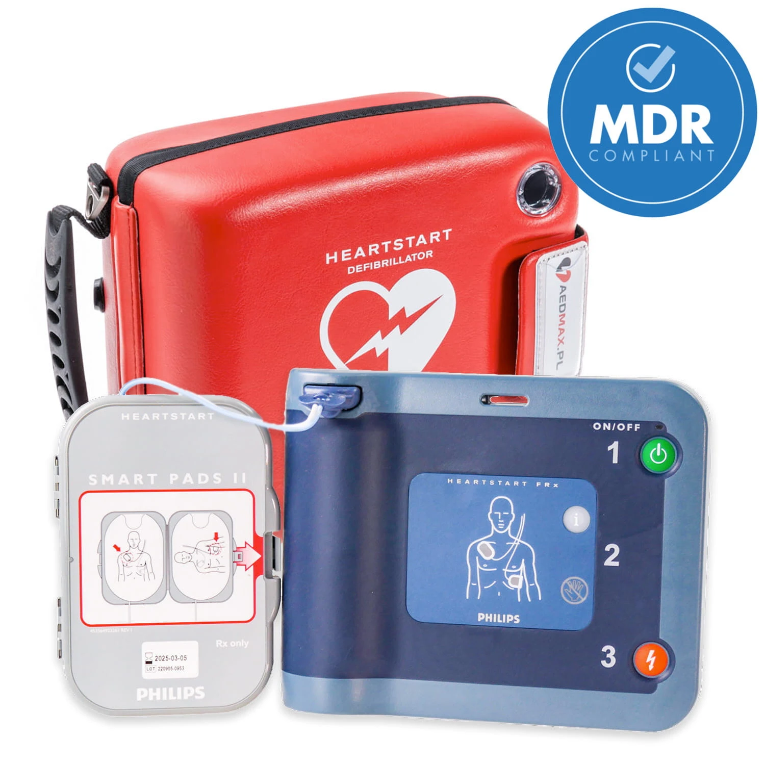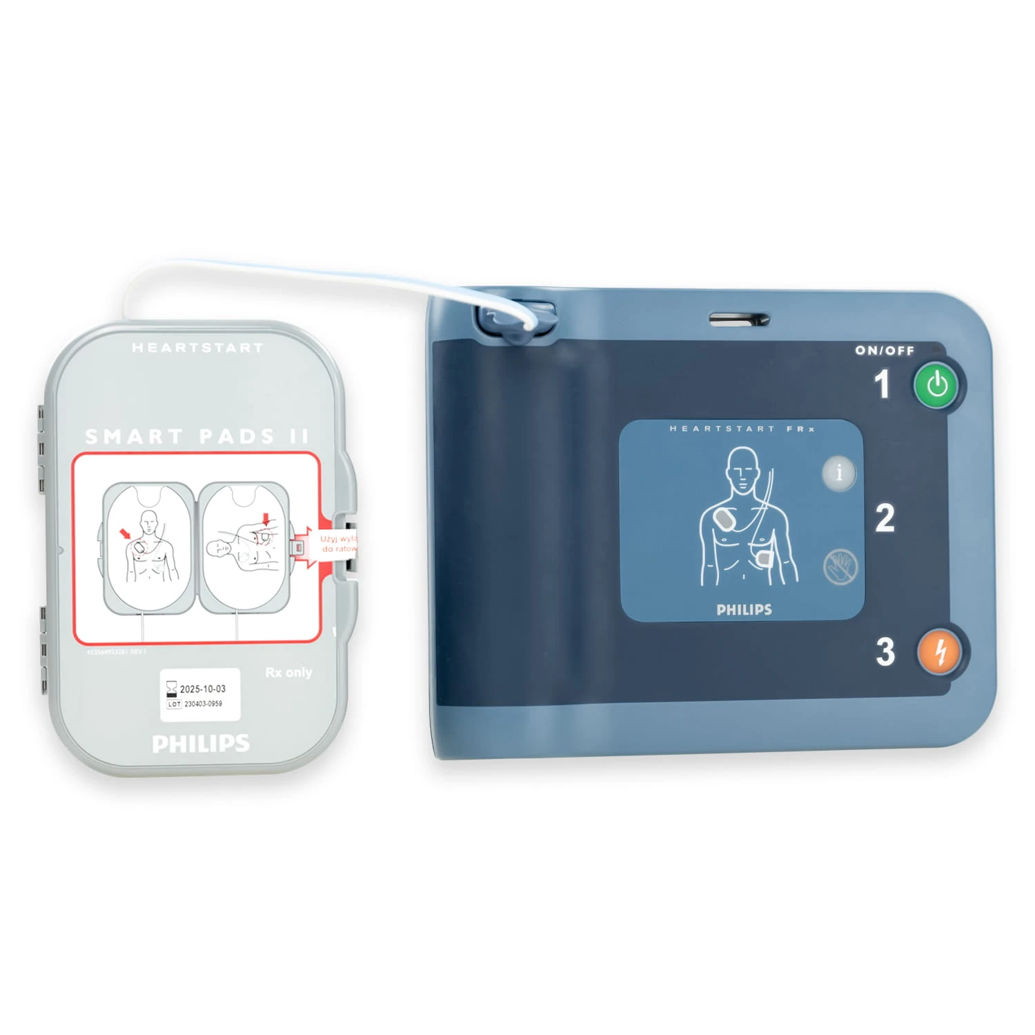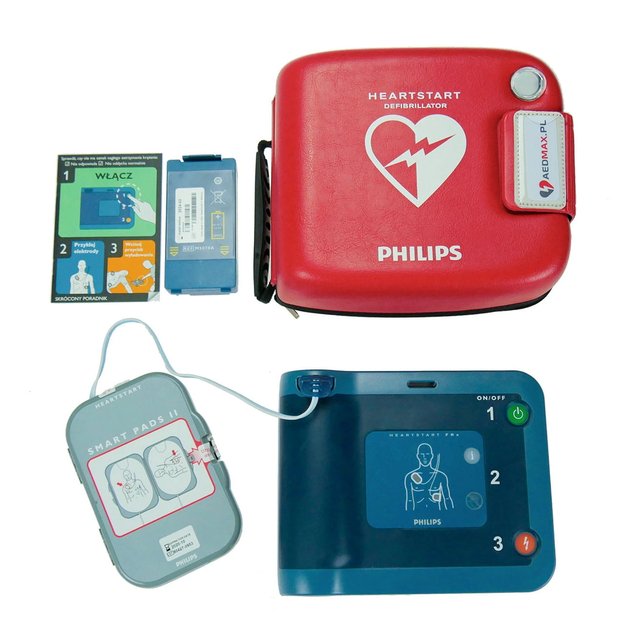 KOMPLETNY ZESTAW Ratuj życie z pewnością i spokojem ducha Zakup defibrylatora Philips FRx to nie tylko inwestycja w zaawansowane technologicznie urządzenie medyczne, ale przede wszystkim, jest to decyzja, która może bezpośrednio wpłynąć na ratowanie życia i zdrowia ludzi. Wybierając ten konkretny model, otrzymujesz nie tylko niezawodne narzędzie, zdolne do działania w najbardziej krytycznych momentach, ale również stajesz się częścią społeczności, która aktywnie działa na rzecz poprawy bezpieczeństwa i zdrowia w swoim otoczeniu. Kupując ten zestaw zyskujesz: