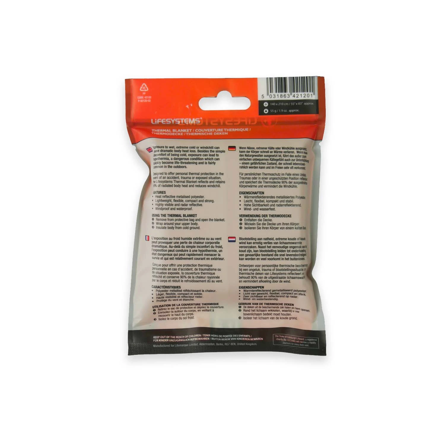 Lekki, kompaktowy koc termiczny, który po owinięciu wokół ciała odbija i zatrzymuje 90% ciepła które organizm traci przez wypromieniowanie, oferuje również osłonę od wiatru.