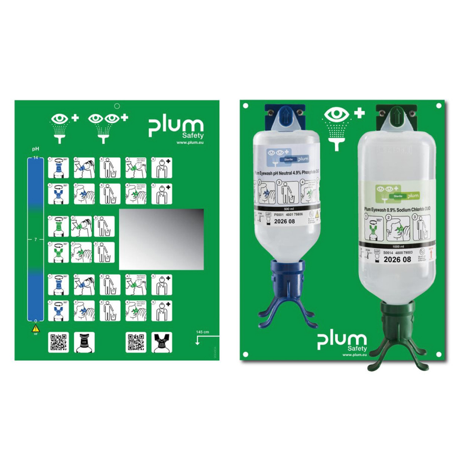 Stacja naścienna - zestaw do płukania oka Plum pH 500ml + 0,9% NaCl 1000ml