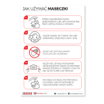 Tablica informacyjna z instrukcją prawidłowego noszenia, w tym zakładania i zdejmowania maseczek ochronnych. Tabliczkę można powiesić w pomieszczeniu socjalnym w miejscu pracy, w sklepie, w szkole, przedszkolu itp. Tablica została wykonana z PET o grubości 0,7 cm , jest bardzo wytrzymała i utrzymuje swój wygląd przez wiele lat. Na tablicy zastosowano nadruk cyfrowy o wysokiej jakości, gwarantujący jej wieloletnią czytelność.