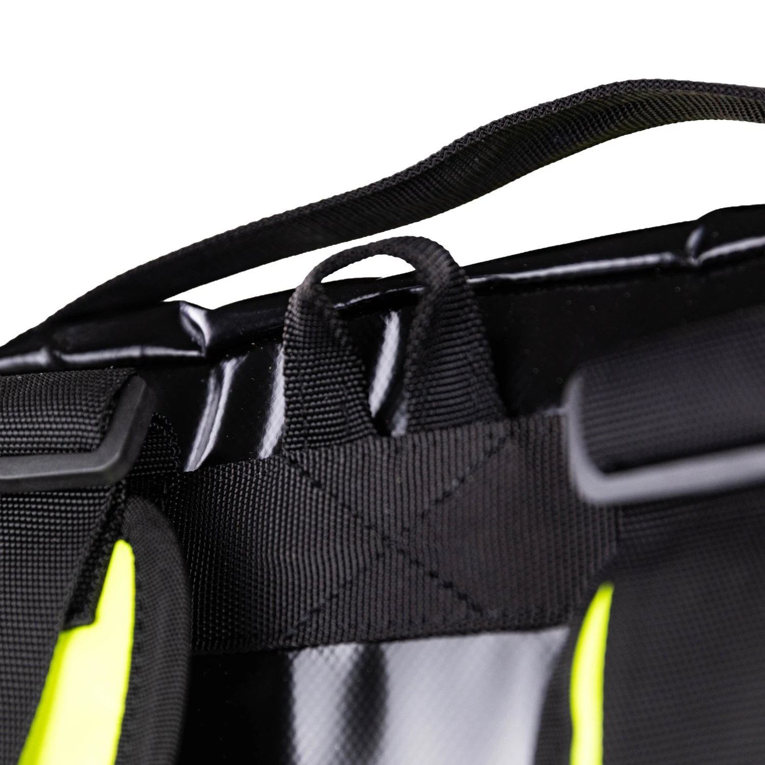 - Po bokach, w przedniej części, dwie gumy na opaski zaciskowe
